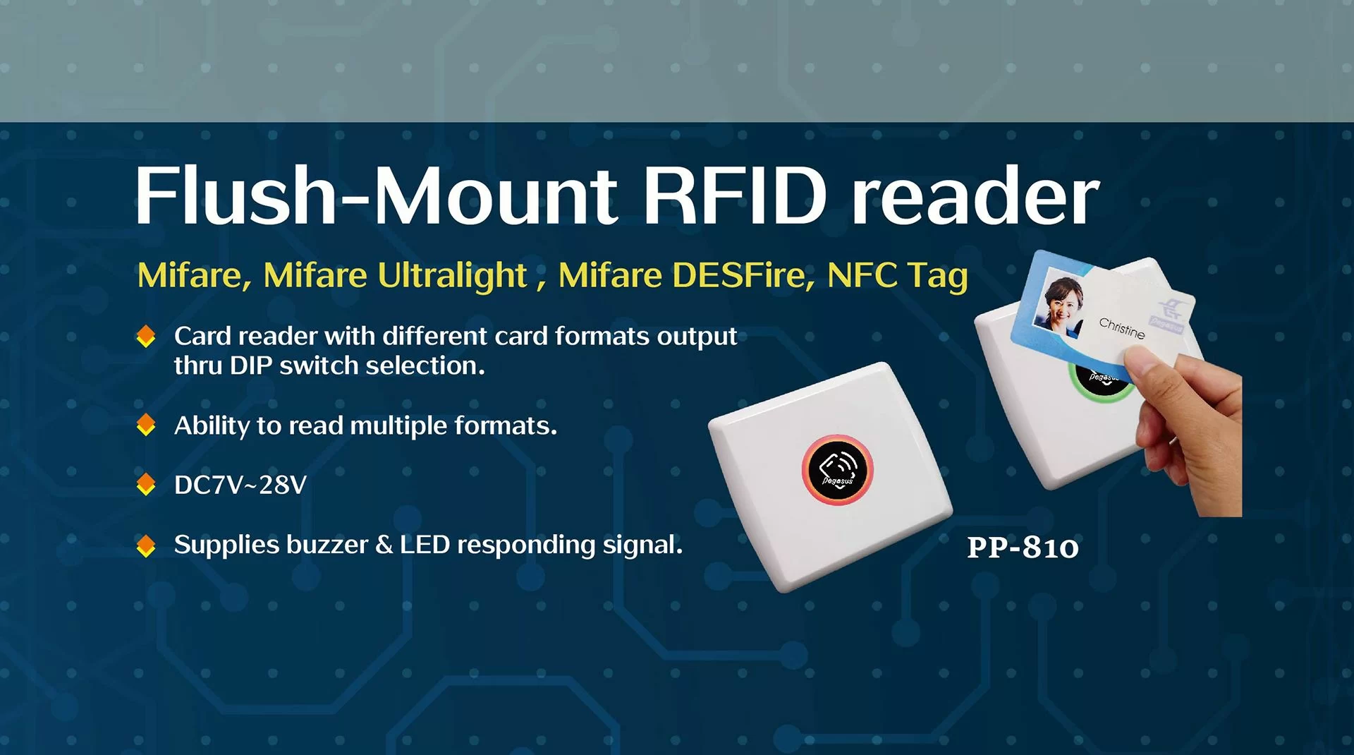 Pongee is the leading door access control manufacturer specializing in researching and developing in the field of signal processing and auto identification products in Taiwan. We especially focus on Access Control and Time & Attendance Systems. “Pegasus” brand is registered in Taiwan and many countries by Pongee Industries Co., Ltd. since 1987 as the most famous brand in the world for marketing Pongee’s related access products. To get more information on high-quality door access control systems such as RFID mifare modules and access control modules, welcome to contact Pongee right away!